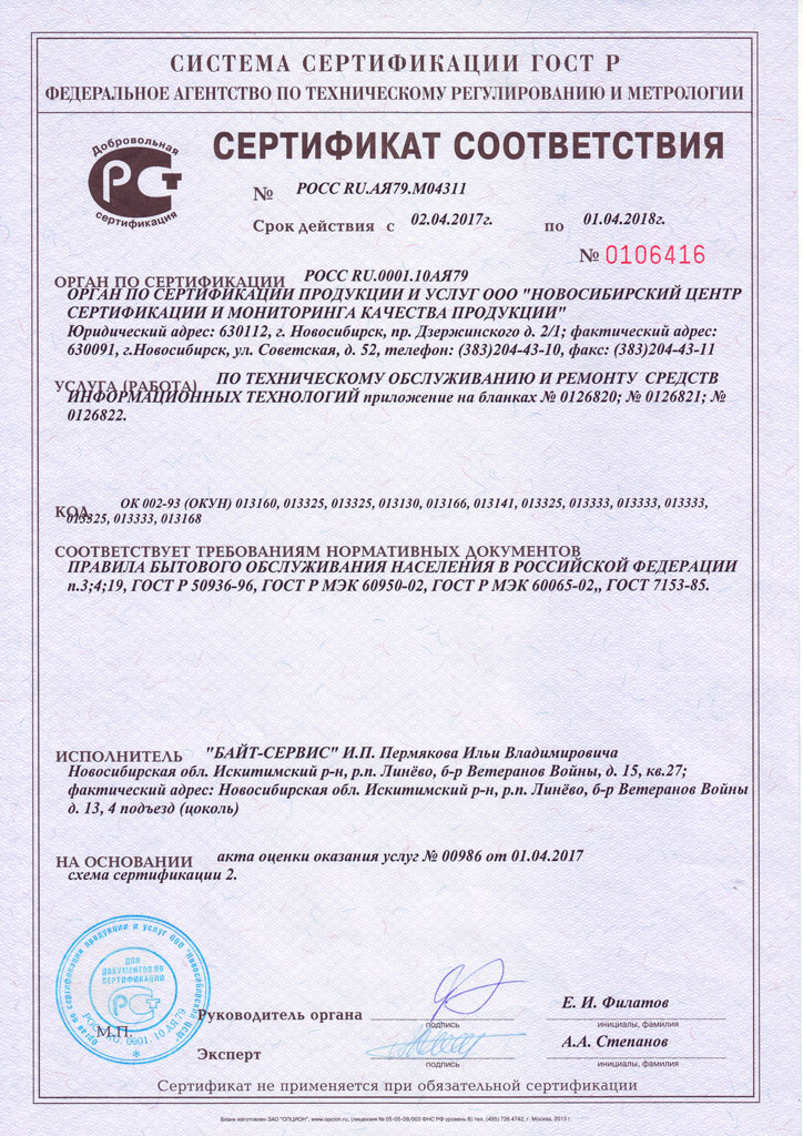 УСЛУГИ СЕРТИФИЦИРОВАНЫ. СЕРТИФИКАТ СООТВЕТСТВИЯ РОСС RU.АЯ79.М04311.